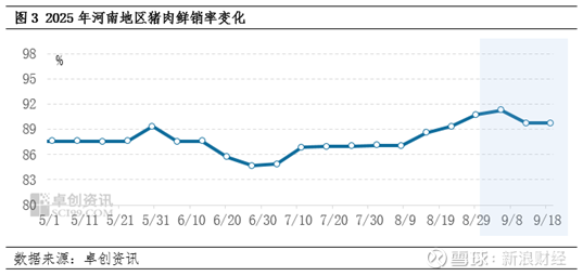 从消费数据来看,9月份河南地区鲜销率呈现了先涨后落得运行趋势。原因在于,9月份学校方面集中开学,团膳场景增加,猪肉需求量相应增多。根据卓创资讯的数据统计,9月第一周,河南地区猪肉鲜销率上升至91.29%,这一数据达到了近半年以来的新高。但随即鲜销率又回落至90%以下水平,主要在于集中需求释放完毕,肉类消费回归平稳阶段,而市场肉类供应仍维持高位,造成了鲜销占比相对下修。
