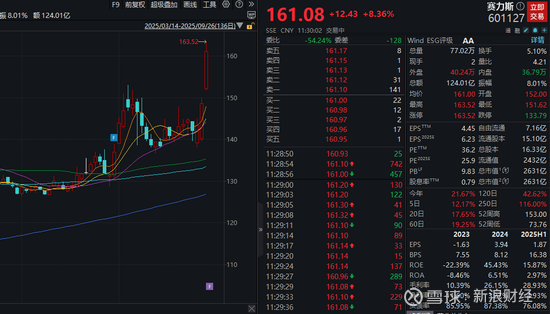 另外,市值超过千亿元的公司中,赛力斯盘中一度触及涨停。