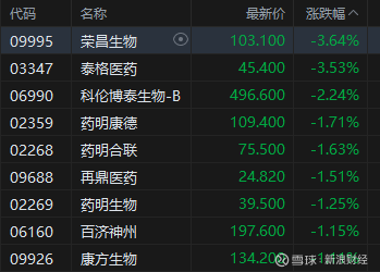 生物医药概念走弱,荣昌生物跌超3%。美国总统特朗普宣布,从2025年10月1日起,将对任何品牌或专利的医药产品征收100%的关税,除非公司正在美国建立他们的制药工厂;如果药企工厂建设已经开始,将不会对这些药品征收关税。