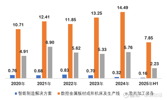 从财务数据来看,金属成形机床和激光加工装备仍是亚威股份主要收入来源,智能制造解决方案收入贡献度一直不算高。