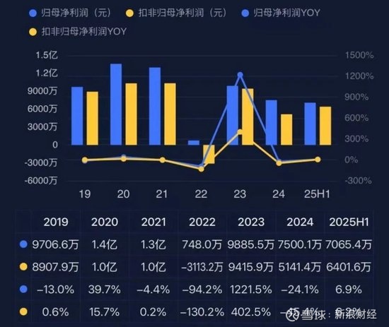 亚威股份2021年以来的净利润也基本是同收入同样的波动趋势,2022年扣非净利润还亏损了3000多万。今年上半年净利润7,065.4万元,同比增长6.9%。
