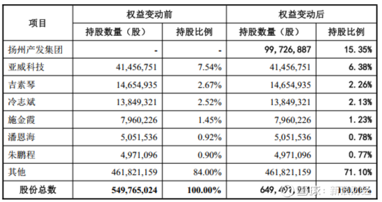 不过几经波折后,最终在2023年6月画上了句号。随后,2025年1月,亚威股份宣布扬州产发集团将通过定向增发成为公司控股股东,扬州市国资委将成为公司实际控制人,并在9月23日盘后更新了最新的发行预案。