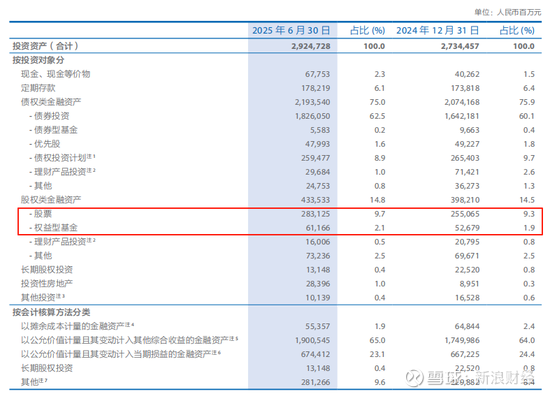 此外,中国人寿上半年总投资收益率3.29%,保持稳健水平。债券、定期存款、债权型金融产品等品种配置比例基本保持稳定,股票和基金(不包含货币市场基金)配置比例由2024年底的12.18%上升至13.60%。