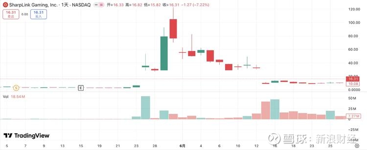 SharpLink Gaming 是这轮‘加密财库热潮’中最早引发市场震动的案例之一。5 月 27 日,公司宣布将增持高达 4.25 亿美元的以太坊作为储备资产,消息公布当日,股价一度飙升至 52 美元。然而诡异的是,早在 5 月 22 日,该股的交易量就已显著放大,股价从 2.7 美元跃升至 7 美元,而彼时公司尚未发布公告,也未向 SEC 披露任何信息。