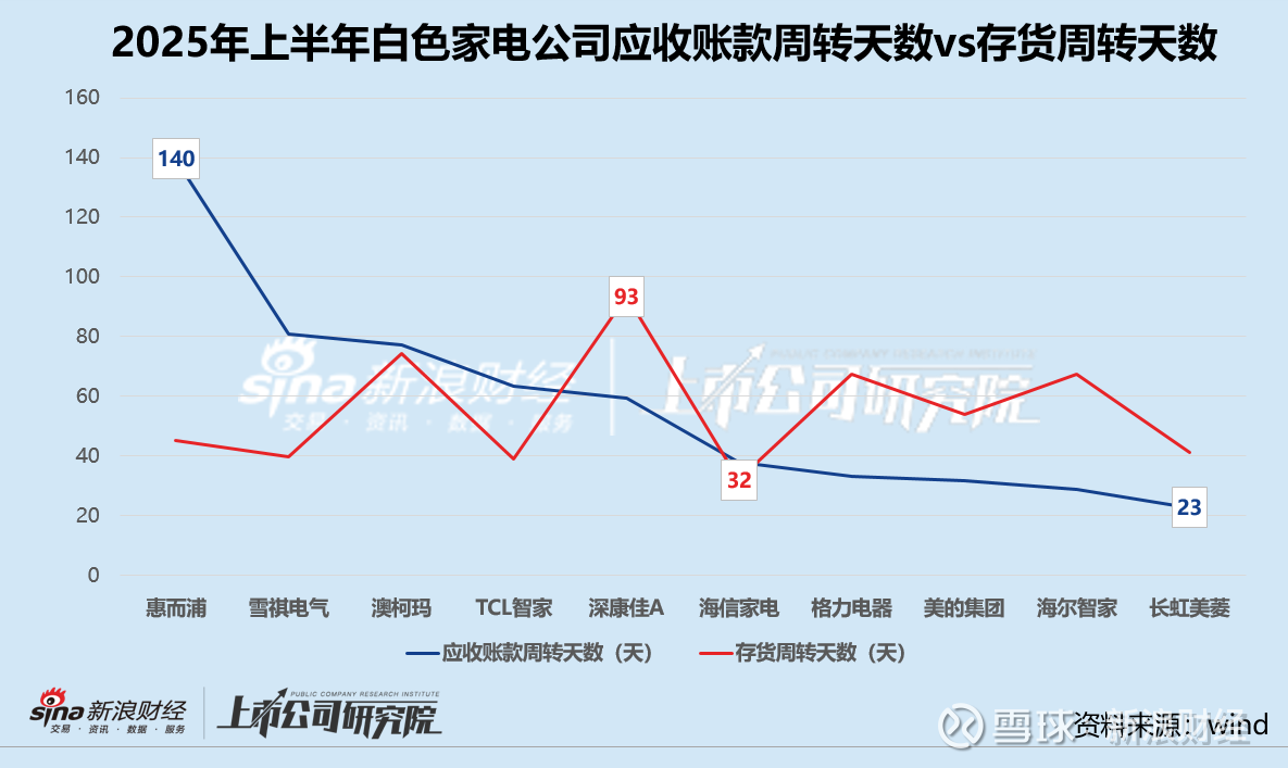 惠而浦应收账款周转天数高达140天,而海尔智家和长虹美菱的资金回笼周期仅需不到30天。业绩公告显示,惠而浦的客户主要是经销商和供应商,截至2025年6月30日,公司境外客户应收账款账面余额约占比84.0%,其中98.4%为180天内到期。深康佳应收账款周转天数同比增幅远超其他可比公司,达22.2%,预计不能收回或不能全部收回的应收账款账面余额合计14.53亿元,约占比46.6%。