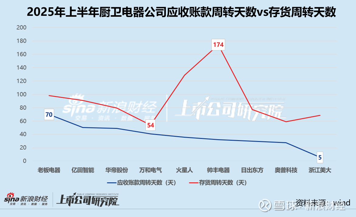 帅丰电器存货周转天数约为174天,同比增长26.7%。截至2025年6月30日,公司存货账面余额合计8295.67万元,超过四分之一为库存商品。火星人存货周转天数也达到120天以上,存货中接近一半为库存商品,较期初增长7.9%。万和电气和奥普科技存货周转效率较高,分别录得54天、59天。