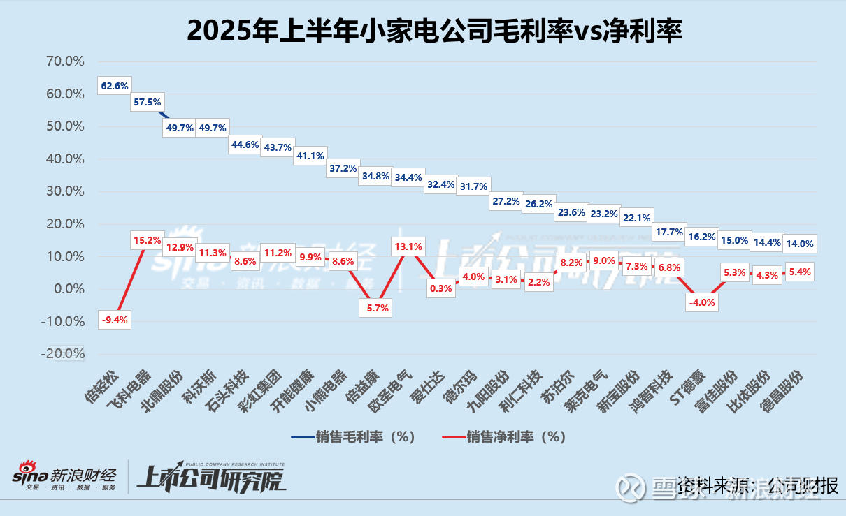 综合作用之下,飞科电器销售净利润率以15.2%在22家公司中领跑,与2024年同期相比小幅增长1.6%,比第二名欧圣电气净利率约高2.1个百分点。倍轻松以-9.4%排名倒数第一,石头科技净利率从2024年上半年的25.4%暴跌至8.6%。