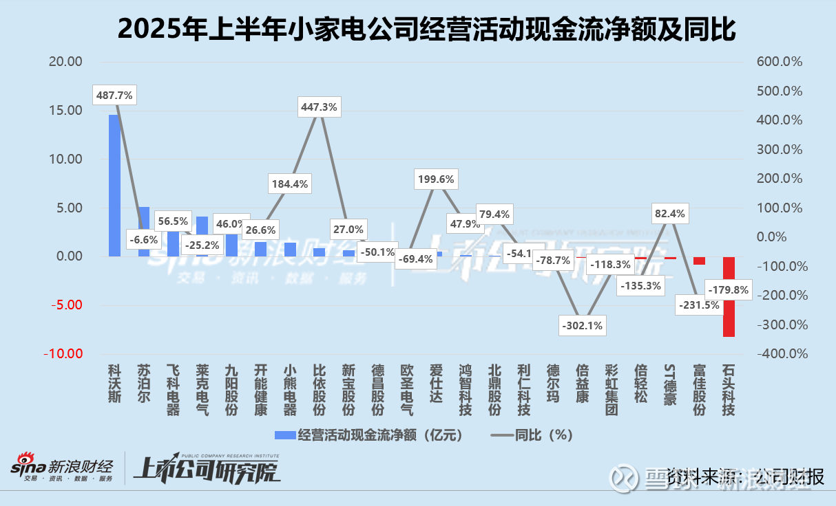 就盈利质量而言,报告期内科沃斯、小熊电器、比依股份和爱仕达经营性现金流转正,倍益康、彩虹集团、倍轻松、ST德豪、富佳股份和石头科技经营活动产生现金净流出,约一半的公司经营活动现金流净额同比减少。科沃斯现金流净额独占鳌头,同比增长487.7%至14.56亿元。而由于采购支出、销售费用和研发投入增加,石头科技的经营活动产生现金净流出8.23亿元。降幅最高的是倍益康,与2024年上半年的268.65万元净流入相比,公司当期经营性现金流为-543.04万元。