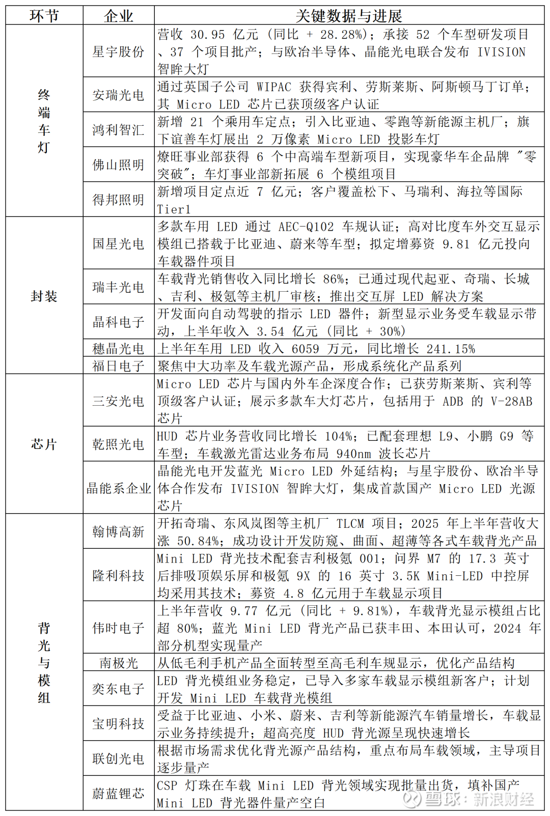如果说终端车灯是“门面”,封装与芯片则是“心脏”。2025年上半年,国产企业在车规级封装、Micro LED芯片领域取得里程碑进展: