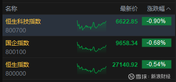 10月3日消息,港股三大指数集体下跌。截至收盘,恒生指数跌0.54%,报27140.92点,恒生科技指数跌0.90%,国企指数跌0.68%。盘面上,科网股跌多涨少,快手跌超3%,京东、哔哩哔哩、小米、网易跌超1%,阿里巴巴涨超1%;电力设备股涨幅居前,上海电气涨超14%;加密货币概念股走强,欧科云链涨超13%;核电股大涨,中核国际涨超21%;汽车股走弱,比亚迪跌超3%;黄金股普跌,潼关黄金跌超4%;大众公用涨近23%,股价创下历史新高。