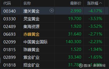 黄金股普跌,潼关黄金跌超4%。10月2日晚,黄金突然高台跳水,曾跌破3820美元/盎司,日内较最高点回落约80美元,此前一度大涨至3896美元/盎司。隔夜美联储官员释放谨慎信号,美联储洛根表示,预计失业率将小幅上升,但不会太高。