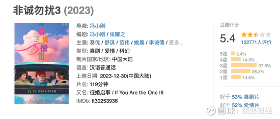 《非诚勿扰3》的豆瓣评分仅有5.4分