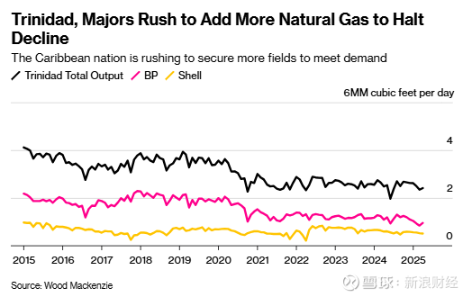 壳牌与英国石油是特立尼达大西洋液化天然气综合体的主要股东。过去十多年来,该综合体的天然气产量持续下滑,供应短缺已导致特立尼达液化天然气及石化产品(包括美国农场主使用的氨)出口受阻。