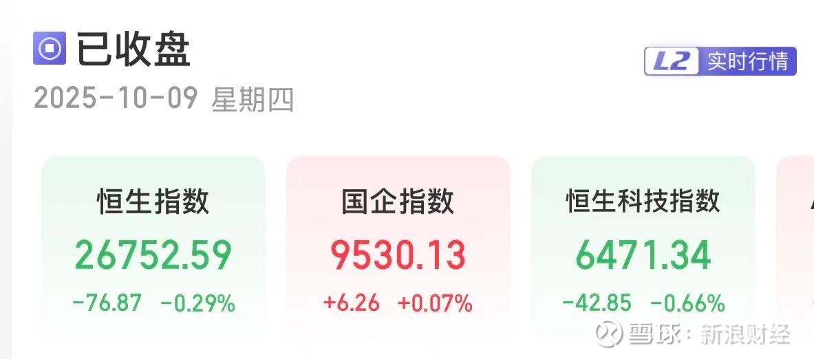上证报中国证券网讯(刘禹希 记者 严晓菲)10月9日,港股三大指数涨跌互现。截至收盘,恒生指数跌0.29%,报26752.59点;恒生国企指数涨0.07%,报9530.13点;恒生科技指数跌0.66%,报6471.34点。