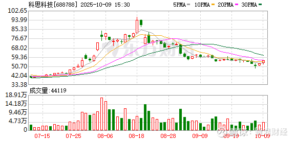 证券时报·数据宝统计显示,科思科技今日收盘价为56.26元,上涨5.77%,日换手率为2.81%,成交额为2.44亿元,全天主力资金净流入4984.66万元,近5日该股累计上涨0.55%,近5日资金合计净流入1164.99万元。