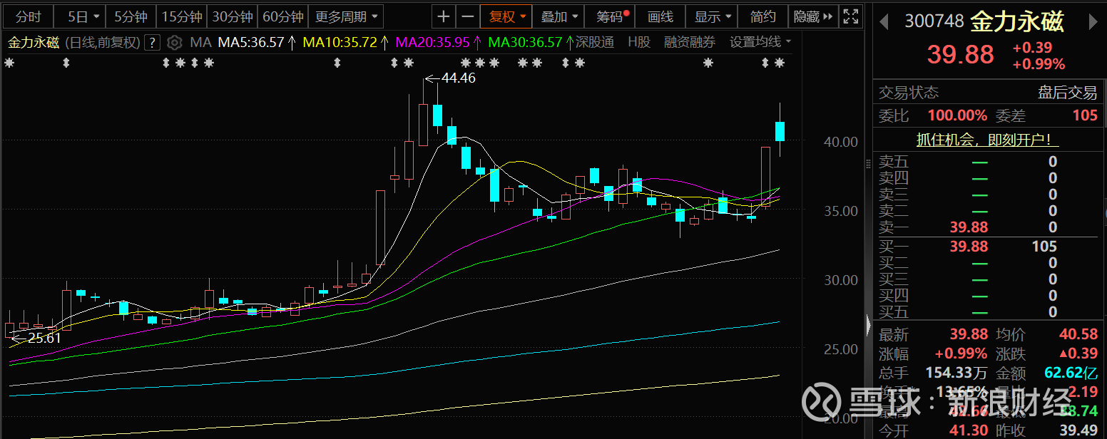 10月10日,金力永磁股价逆势上涨,截至10日收盘,金力永磁涨0.99%,报39.88元/股。