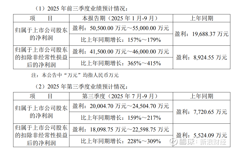 对于业绩变动原因,金力永磁表示: 2025 年前三季度,在行业竞争持续加剧的背景下,公司管理层坚持稳健、合规的经营方针,积极拓展市场,通过技术创新、组织优化及精益管理,不断提升运营效率与盈利能力。此外,公司通过灵活调整原材料库存策略等措施,积极应对稀土原材料价格波动风险,保障交付能力获得国内外客户的充分肯定,进一步巩固了经营的稳定性、可持续性。截至目前,公司第四季度在手订单充足。公司产品被广泛应用于新能源汽车及汽车零部件、节能变频空调、风力发电、机器人及工业伺服电机、3C、低空飞行器、节能电梯等领域,并与各领域国内外龙头企业建立了长期稳定的合作关系。公司已成立具身机器人电机转子事业部,2025 年前三季度具身机器人电机转子及磁材产品均有小批量交付;低空飞行器领域公司亦有小批量产品交付。 2025 年前三季度,预计非经常性损益对净利润的影响金额约为9,000.00万元,上年同期非经常性损益对净利润的影响金额为 10,763.82 万元。