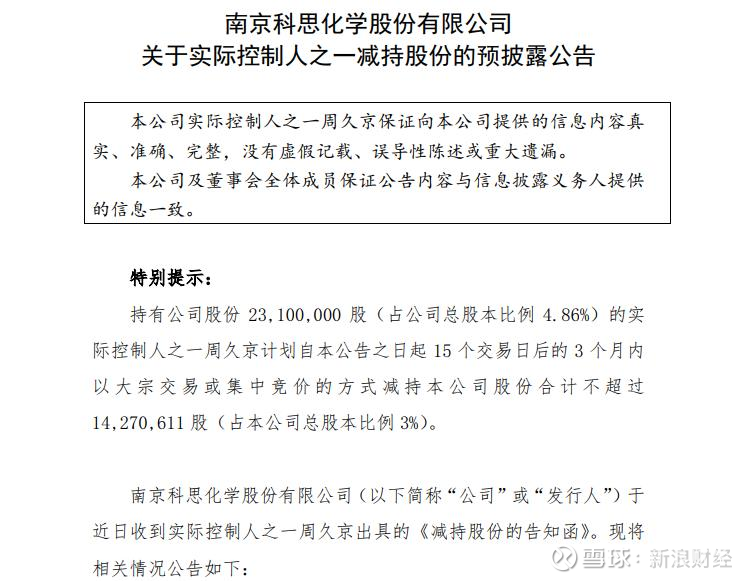 值得一提的是,今年7月,周久京曾有意减持公司股份。7月17日,科思股份发布了一则“关于实际控制人之一减持股份的预披露公告”称,周久京因个人资金需求,拟以大宗交易或集中竞价方式减持不超过14270611股(不超过公司总股本3%)。