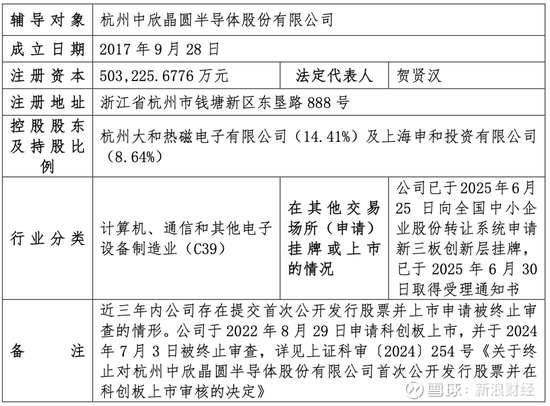 此前,中欣晶圆已于2025年6月25日向全国中小企业股份转让系统申请新三板创新层挂牌,并已于6月30日取得受理通知书。