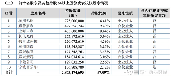 中欣晶圆成立于2017年9月,注册资本50.32亿元,法定代表人贺贤汉,控股股东杭州大和热磁电子有限公司及上海申和投资有限公司分别持股14.41%、8.64%。基于持股比例及《一致行动协议》,杭州热磁与上海申和合计控制公司28.11%的表决权。