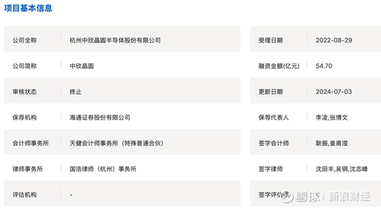 中欣晶圆于2022年8月29日申请科创板上市,并于2024年7月3日被终止审核。