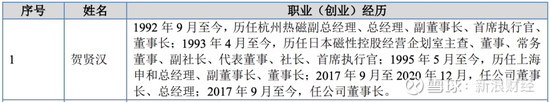 中欣晶圆披露,1992年9月至今,贺贤汉历任杭州热磁副总经理、总经理、副董事长、首席执行官、董事长;1993年4月至今,历任日本磁性控股经营企划室主查、董事、常务董事、副社长、代表董事、社长、首席执行官;1995年5月至今,历任上海申和总经理、副董事长、董事长;2017年9月至2020年12月,任公司董事长、总经理;2017年9月至今,任公司董事长。