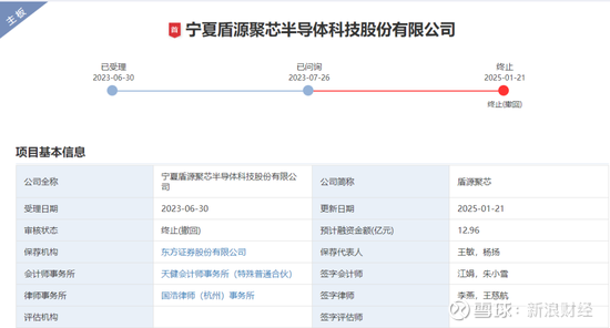 今年初,深交所于1月21日在官网发布,因宁夏盾源聚芯半导体科技股份有限公司(简称“盾源聚芯”)、保荐人撤回发行上市申请,根据《深圳证券交易所股票发行上市审核规则(2024年修订)》第六十二条,深交所决定终止其发行上市审核。