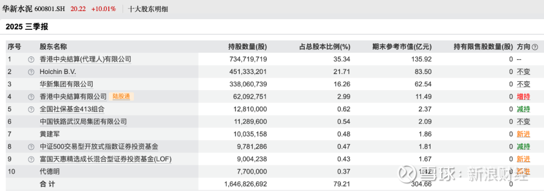 此前,多位知名主动权益基金经理对华新水泥已有布局。2025年基金半年报显示,截至6月末,基金经理杨鑫鑫管理的工银创新动力、刘莉莉管理的富国研究精选、范妍管理的富国稳健增长、董辰管理的华泰柏富利等均有百万股以上的持仓。