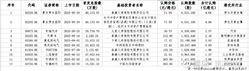 中国太保及旗下子公司也频繁亮相基石投资者名单,分别出现在紫金黄金国际与宁德时代的IPO中,认购金额分别约为4.68亿港元与3.88亿港元。