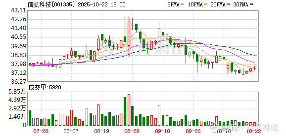 证券时报·数据宝统计,截至发稿,信凯科技收盘价为37.53元,平盘报收,本期筹码集中以来股价累计下跌2.32%。具体到各交易日,3次上涨,4次下跌。