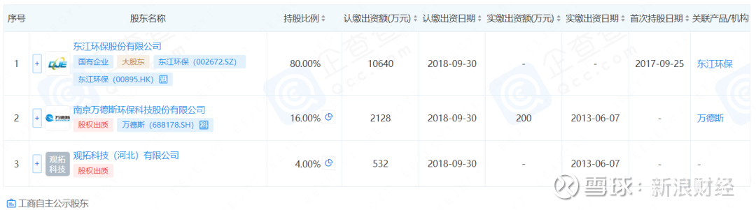 企查查显示,曹妃甸环保成立于2013年,主营危废业务,注册资本13300万元,万德斯持股16%,观拓科技持股4%,东江环保持股80%,系控股股东。其中,万德斯与观拓科技所持股权均处于出质状态。