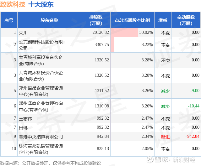 根据致欧科技2025年三季报公布的十大股东详情如下: