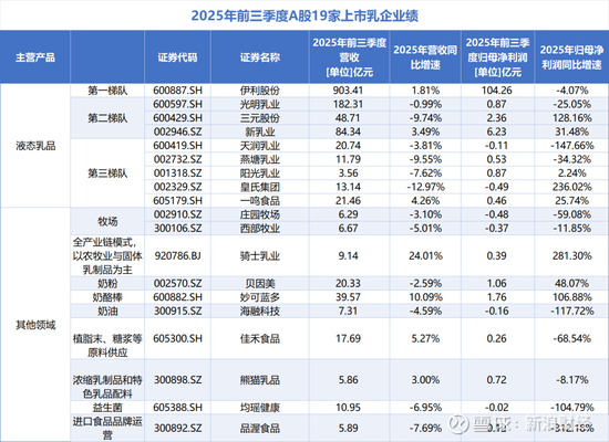 第一梯队龙头伊利、蒙牛营收增长乏力、净利润承压;第二梯队中,光明乳业业绩双降,三元股份营收下滑,仅新乳业实现双增;第三梯队区域乳企多数陷入亏损……