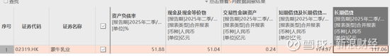 蒙牛乳业资金也不宽松。截至2025年上半年末,资产负债率51.88%,账上货币资金51亿元,1年内需要偿还的银行贷款近180亿元,还有长期贷款117亿元。