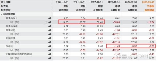 清越科技上市前后业绩反差极大。上市前,公司业绩呈现出稳步高速增长态势,上市成功后业绩便大幅变脸。近五年财务数据显示,公司2020年至2022年营收增速由14.33%持续飙涨至50.4%。需要强调的是,2022年为公司首次挂牌上市年份,随后公司业绩开始大幅变脸,2023年营收增速骤降36.69%,2023年首次由盈转亏,亏损状态持续至今。