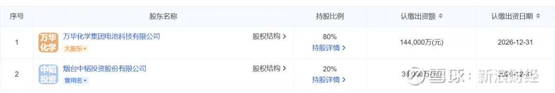 据悉,万华化学(烟台)电池产业有限公司由万华化学集团电池科技有限公司(万华电池,持股80%)和烟台中韬投资股份有限公司(持股20%)合资成立。