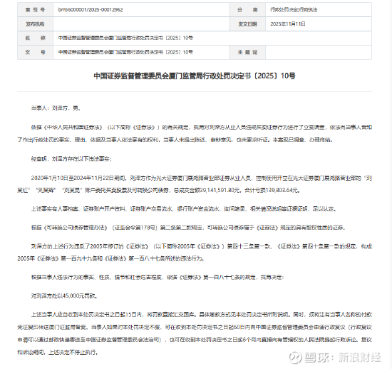 11月11日,据厦门证监局披露,光大证券厦门展鸿路营业部证券从业人员刘泽方,控制使用开立在光大证券厦门展鸿路营业部的“刘某红”“刘某辉”“刘某昆”账户委托买卖股票及可转换公司债券,总成交金额39,141,591.80元,合计亏损139,803.64元。