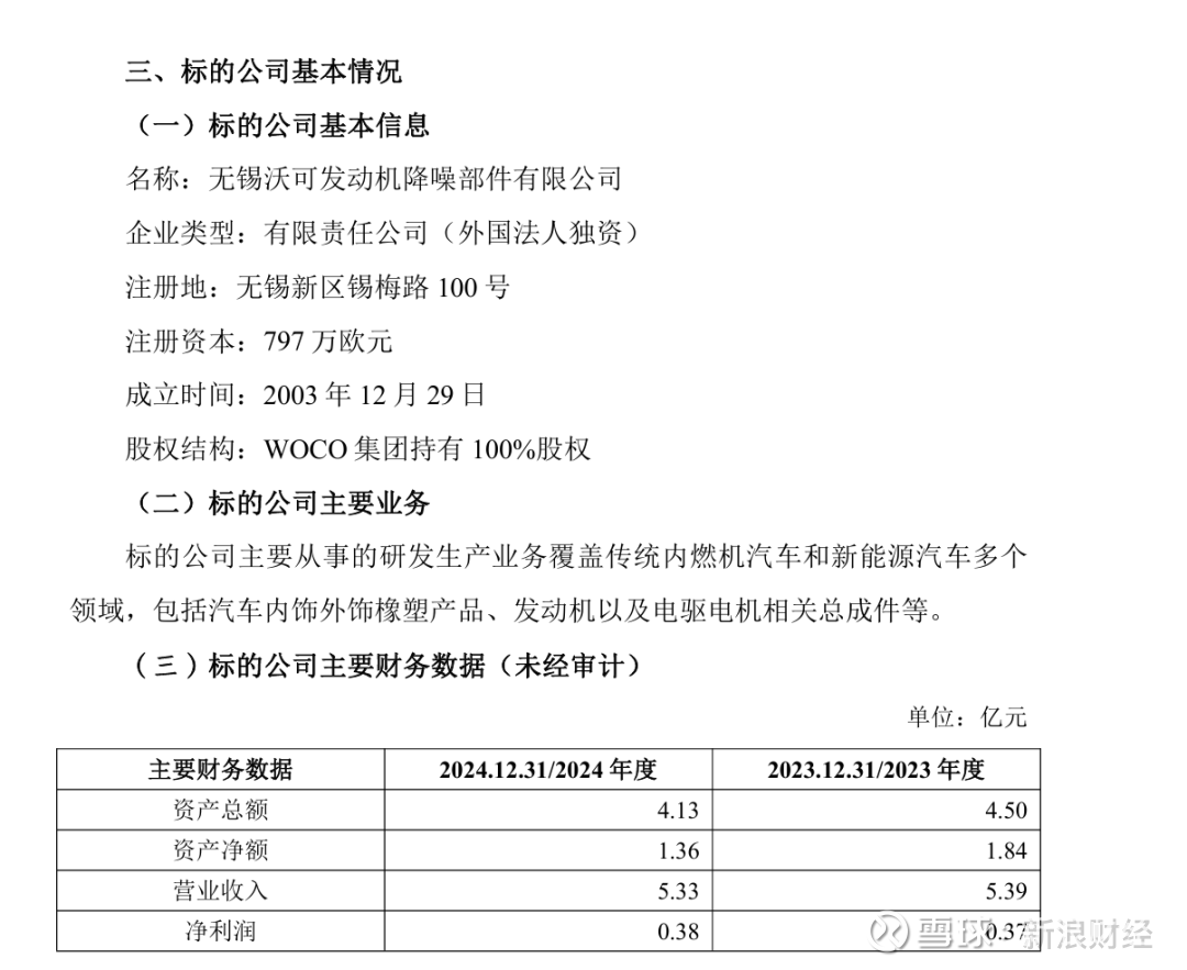 据公告,无锡沃可成立于2003年,主要从事的研发生产业务覆盖传统内燃机汽车和新能源汽车多个领域,包括汽车内饰外饰橡塑产品、发动机以及电驱电机相关总成件等。