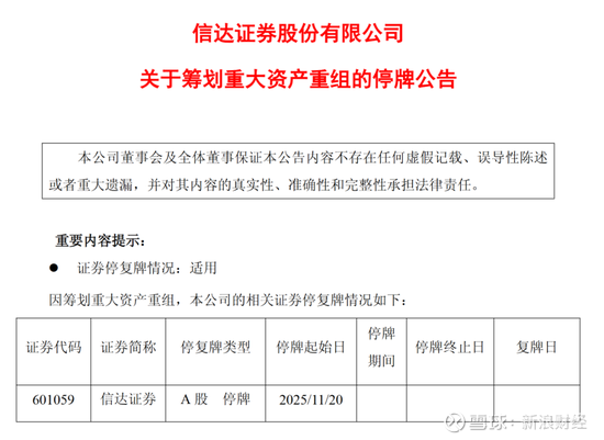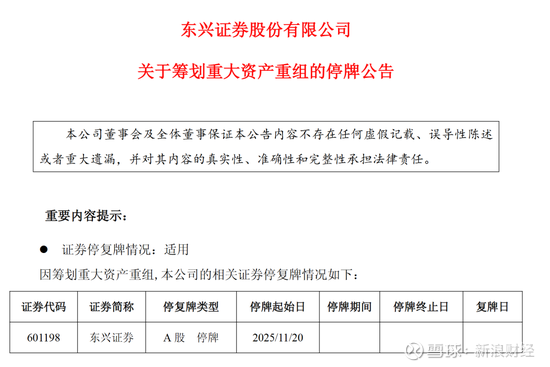 信达证券、东兴证券亦公告称,公司A股股票将于2025年11月20日(星期四)开市时起开始停牌,预计停牌时间不超过25个交易日。