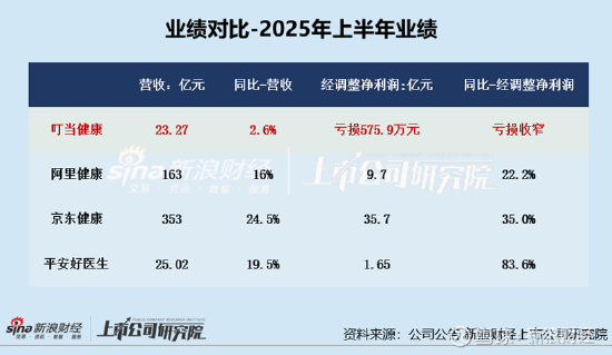 从业绩上来看,叮当健康在京东健康、阿里健康、平安好医生四家上市互联网医疗平台的业绩对比中黯然失色。2025年上半年的业绩数据显示,叮当健康营收23.27亿元,股东应占亏损5167万元,尽管亏损有所收窄,但其营收规模与盈利能力均远远落后于另外三家平台。2018-2024年及2025年上半年,叮当健康亏损规模超60亿元。