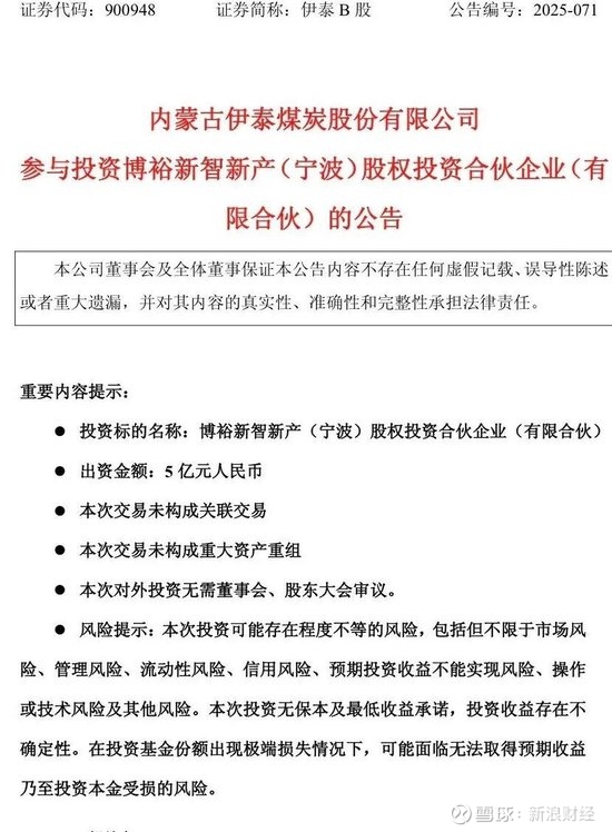 公告显示,宁德时代、洛阳钼业和伊泰B分别出资5亿成为上述基金的有限合伙人。