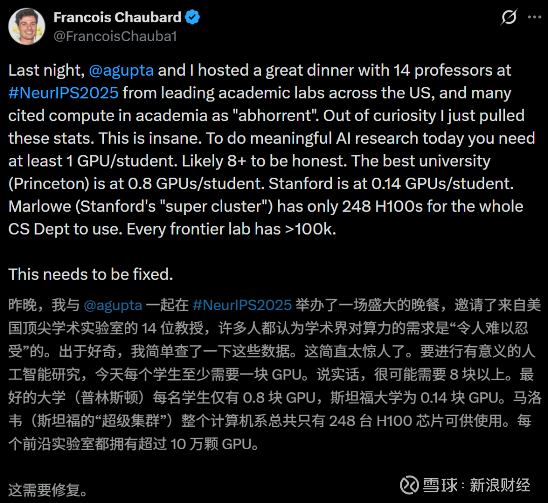 没想到,席间很多人都在吐槽:学术界算力资源简直「惨不忍睹」!