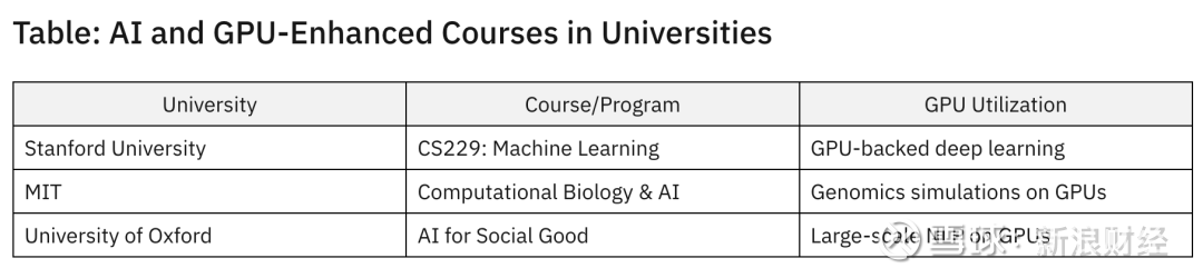 如下表所示,斯坦福、MIT、牛津大学需要使用GPU相关的课程。
