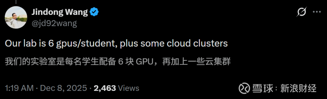 微软研究院前高级研究员,威廉与玛丽学院助理教授Jindong Wang表示,实验里每位学生配备6张GPU,还有云集群可用。