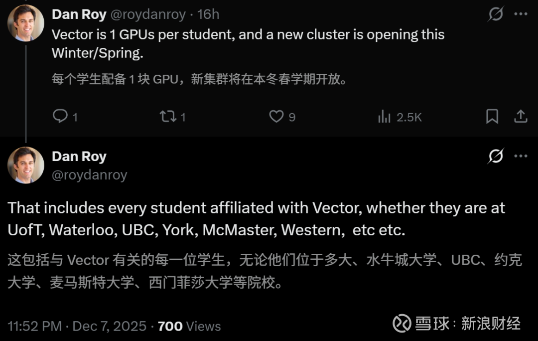 Vector研究所研究总监,多伦多大学统计与计算机系教授Dan Roy表示,他们会给每位学生都配备1张GPU。