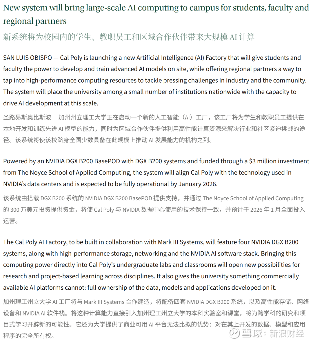 无独有偶,加州州立理工大学也在启动一个由英伟达DGX加持的「AI工厂」——