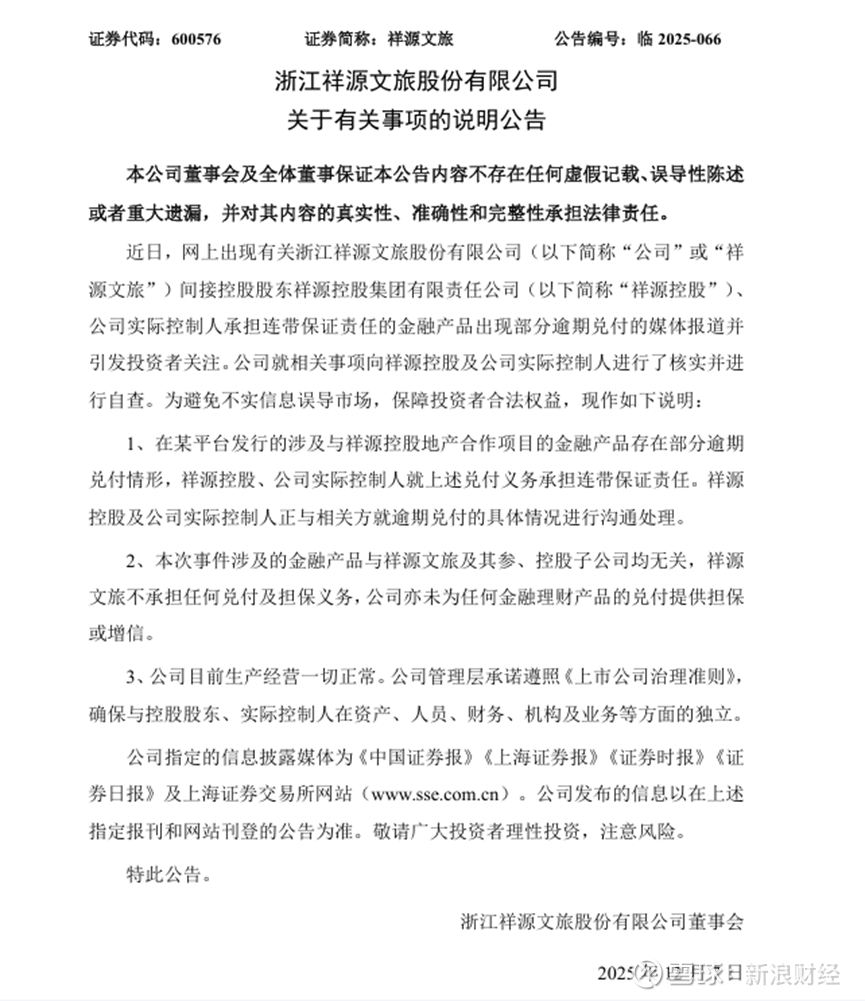 近日,“祥源系”旗下三大上市公司祥源文旅(600576.SH)、交建股份(603815.SH)、海昌海洋公园(02255.HK)相继发布公告,称在某平台(指“浙江金融资产交易中心”)发行的涉及与祥源控股地产合作项目的金融产品存在部分逾期兑付情形,祥源控股、公司实际控制人就上述兑付义务承担连带保证责任,涉及的金融产品与祥源文旅及其参、控股子公司均无关。
