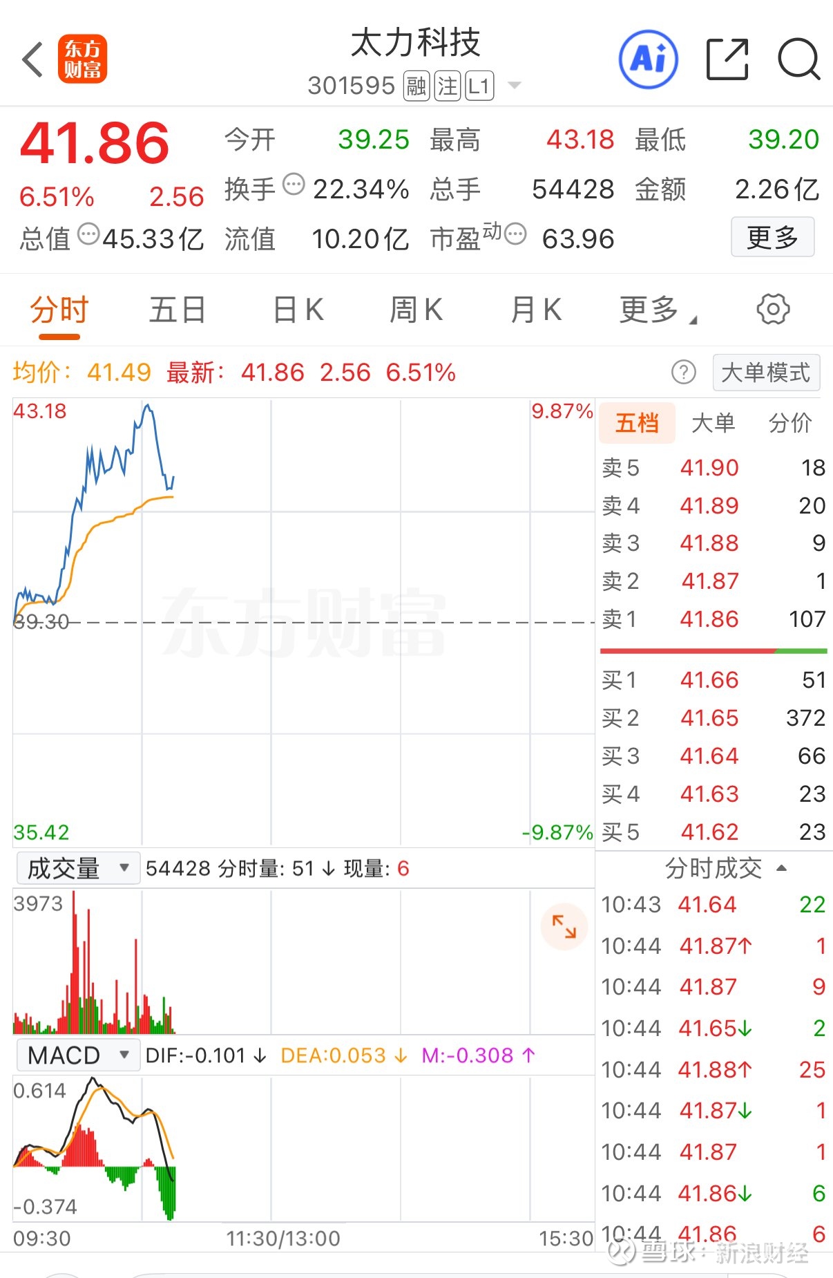上证报中国证券网讯(记者何治民)12月12日早盘,太力科技一度涨超9%。截至10时44分,该股股价涨6.51%,报41.86元/股。