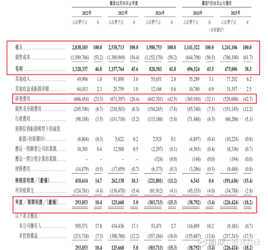 招股书显示,2024年,新诺威的研发费用较2023年的6.71亿元增长25.51%至8.43亿元,占当年收入比例高达42.5%,这也成为公司亏损的主要原因。