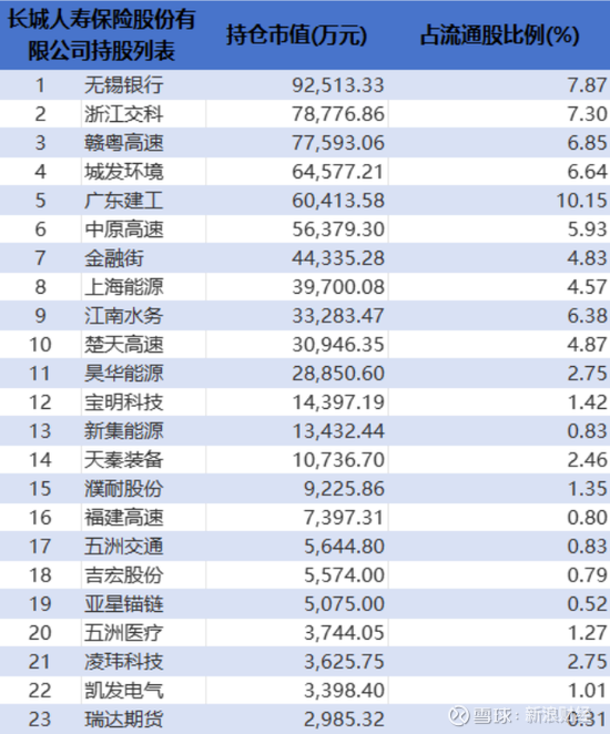 而2024年年初长城人寿仅出现在5家上市公司的前十大流通股股东之列,合计市值仅为25.83亿元。在不到两年的时间里,其持股公司数量与持仓总市值均实现了数倍增长。